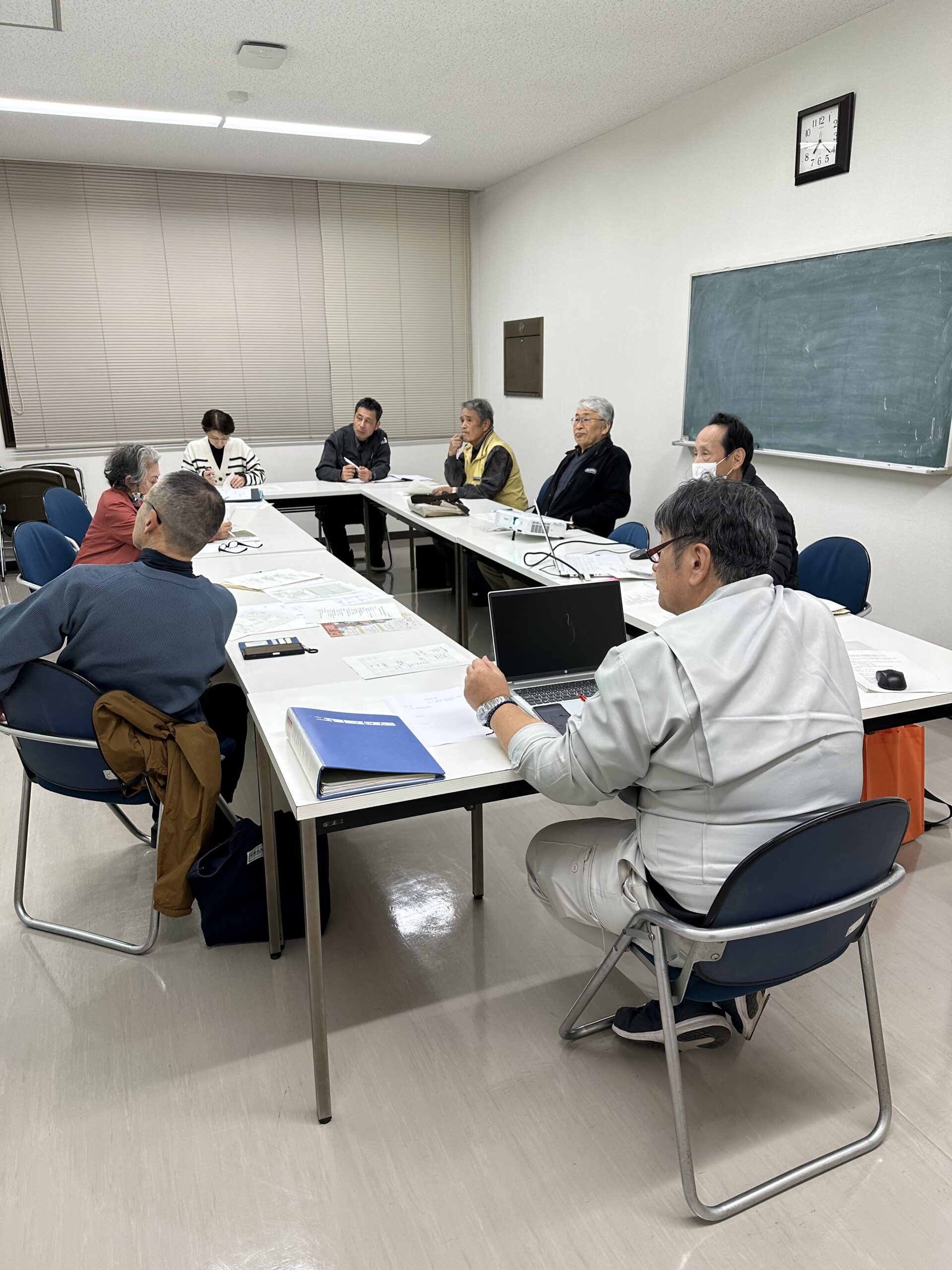 11/24現場確認会の最終確認をしました。  自治協議会理事…9人、事務局…3人、社協…2人、支所…1人、防災課…1人、指定職員…1人、合計17人のスタッフが参加します。 区自治会からの参加者は現在のところ24人を予定しています。